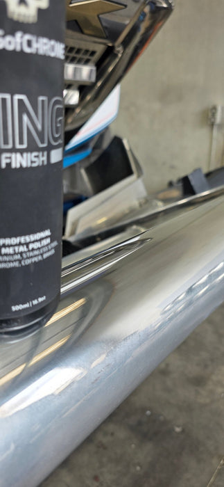To prove how well the polish is easy to use and apply, we gave a bottle to one of the best metal polishers in New Zealand to test. He had a truck come in with very old, oxidized Aluminium, that had not had anything done to it for many years, if ever. Normally this would be a job for machine polishing, but he wanted to see what the new Kings of Chrome metal polish could do. He simply applied some Kings of Chrome King Finish metal polish onto a cloth and rubbed quickly by hand, took the following photos of the results. These results are not from machine polishing purely rubbing by hand. It was quick and easy, and the results speak for themselves. This is why we believe that Kings of Chrome King Finish metal polish is the best metal polish for hand and machine polishing. it just works very well, giving an amazing shine and quick and easy to use.