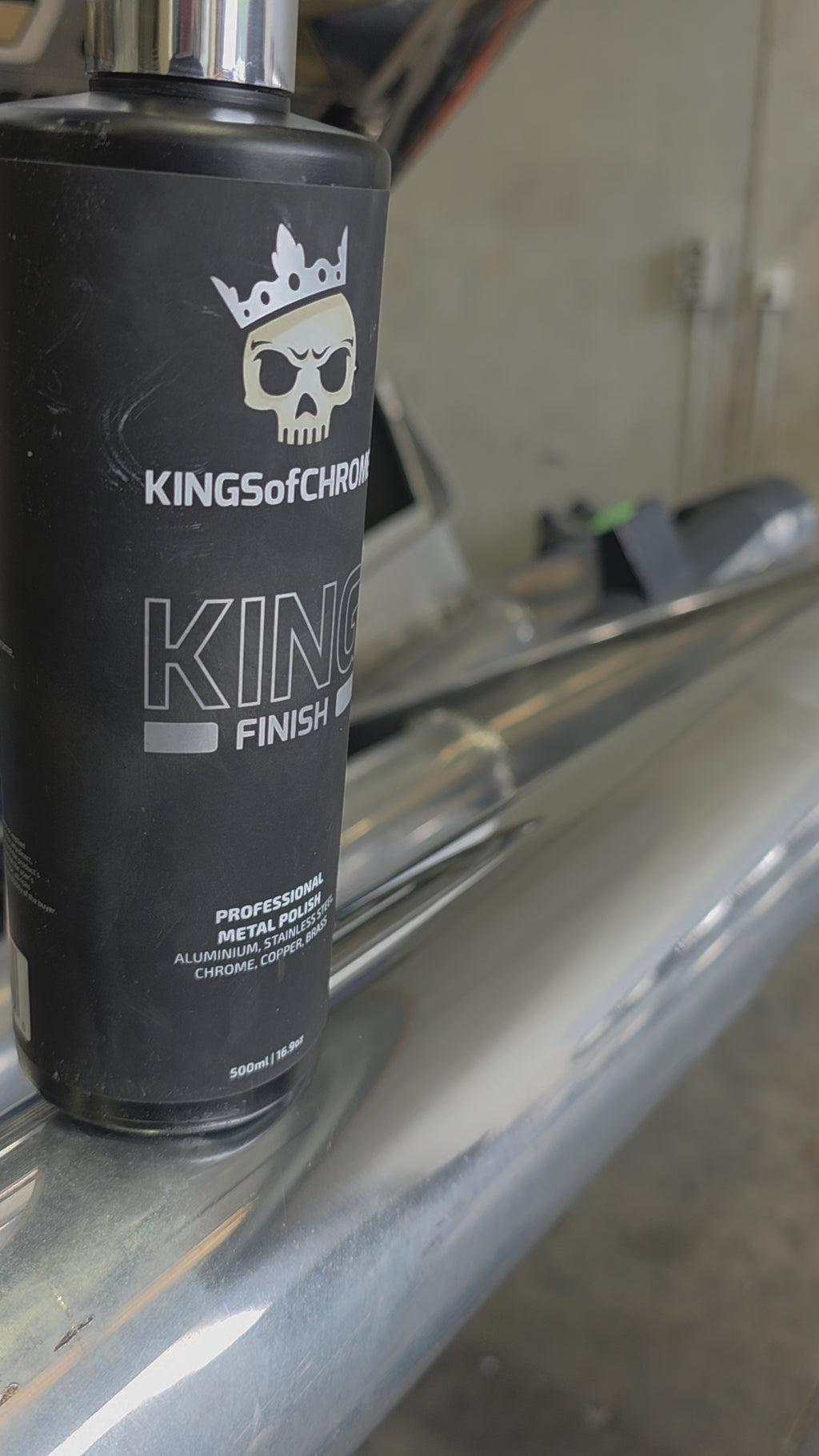Kings Of Chrome Metal Polish 500ml With Limited Edition Chrome Top. Drop the nut into the bottle to make it easier to shake and mix.